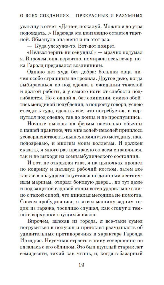 Прочитала залпом первую книгу Херриота. Захотела приобрести остальные. Юмор, любовь к животным, профессионализм- качества врача и писателя.