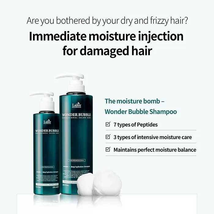 Серия: Wonder Wonder Bubble Shampoo — увлажняющий шампунь для волос с эффектом восстановления объёма. Он эффективно очищает локоны и кожу головы, устраняет перхоть, восстанавливает гладкость, упругость и эластичность прядей.