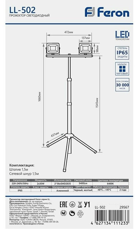 Feron Прожектор светодиодный на штативе Feron LL-502-20% +349