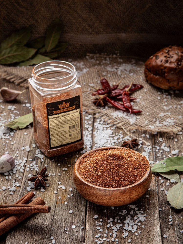 Приправа для картофеля свежая, пахнет замечательно. Спасибо производителям и за отличную расфасовку, баночка не стеклянная, многоразовая, специи все в них свежие, не просроченные, указанный вес соответствует. Будем пользоваться долго и с удовольствием, рекомендую!...Взяли по Акции (3+1), спасибо всей команде Flip за доставленное удовольствие!