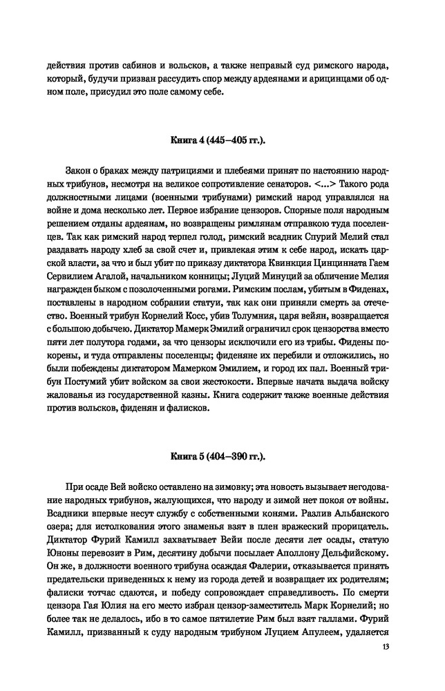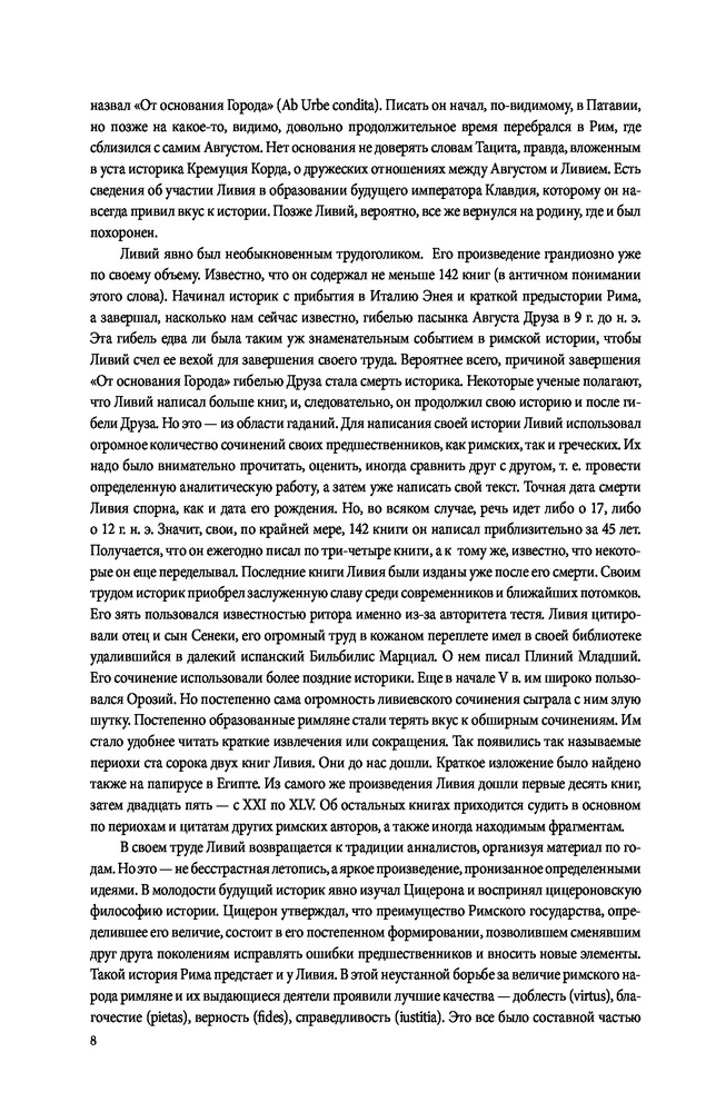 Впервые, в начале XX в. все сохранившиеся главы «Истории Рима» перевел Андриянов П. Впоследствии коллектив известных филологов и историков античности, во главе с Зелинским Ф.Ф., Кнабе Г.С., Гаспаровым М.Л. и Смириным В.М. сделали современный, улучшенный перевод, который был дополнен ценными комментариями, поясняющими мысль Тита Ливия. Именно с этим вариантом перевода мы и предлагаем ознакомиться читателю. |