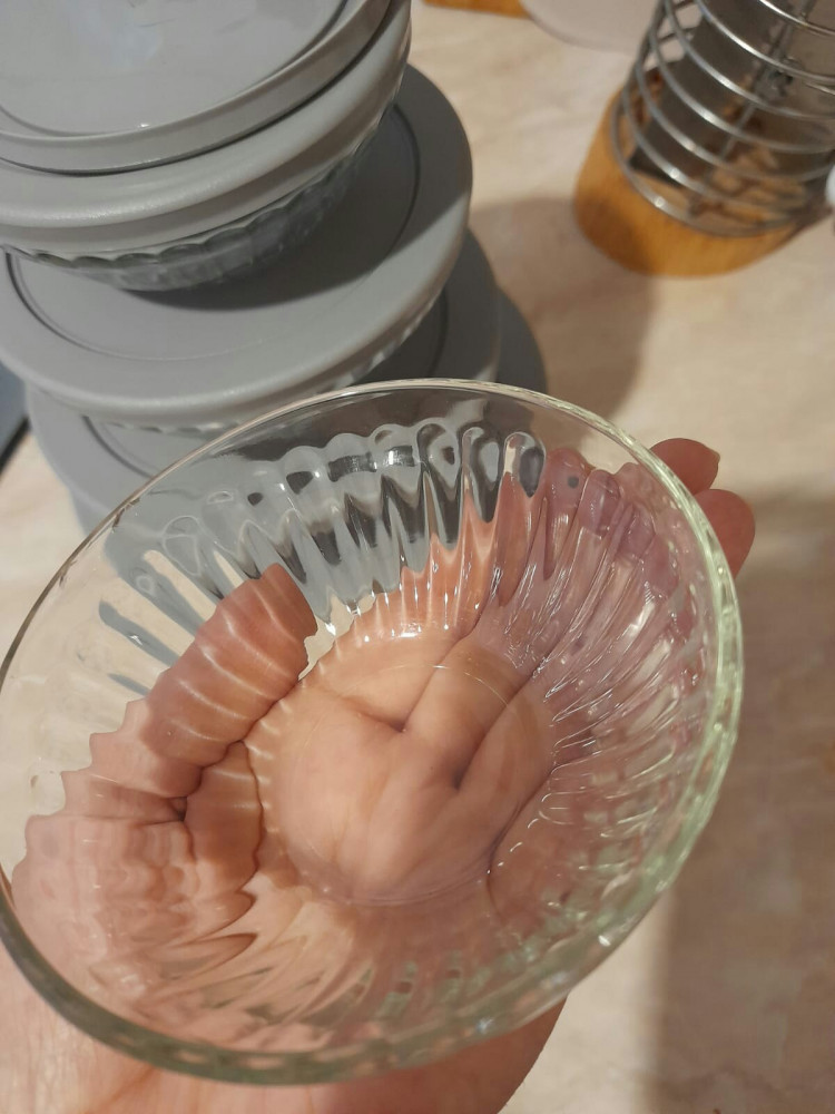 Набор ёмкостей не плохой,стекло средней толщины,крышки прилегают плотно.Только почему то рифлённая сторона стекла внутри,а не снаружи как обычно у всех стеклянных изделий с рифленной поверхностью!В общем по цене и качество!