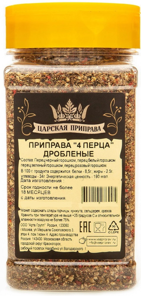 20 г куплен на flipХорошая, ароматная смесь перцев среднего помола. Но я предпочитаю покупать перец горошком и молоть собственноручно.