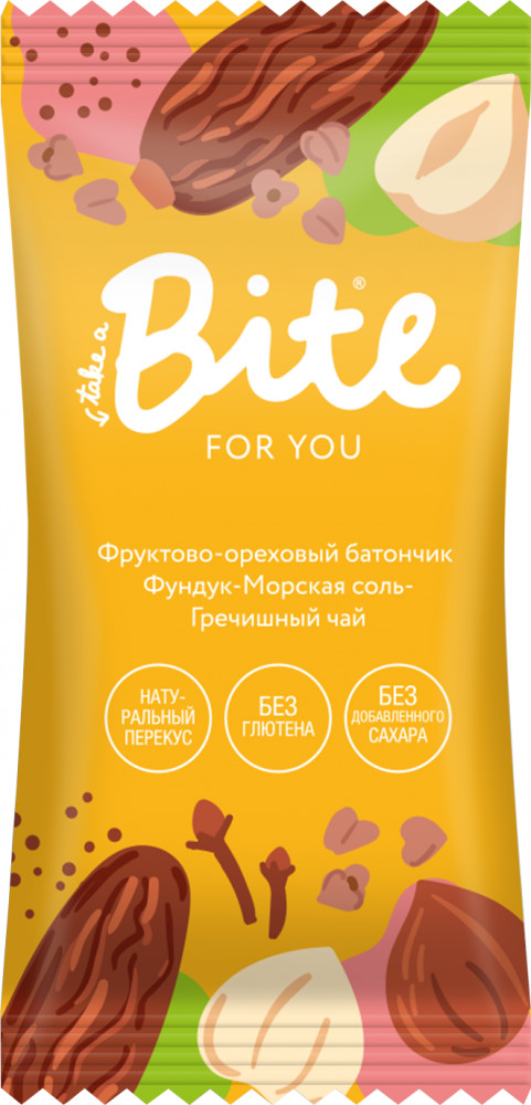 Bite Батончик фруктово-ореховый «Фундук-морская соль-гречишный чай»