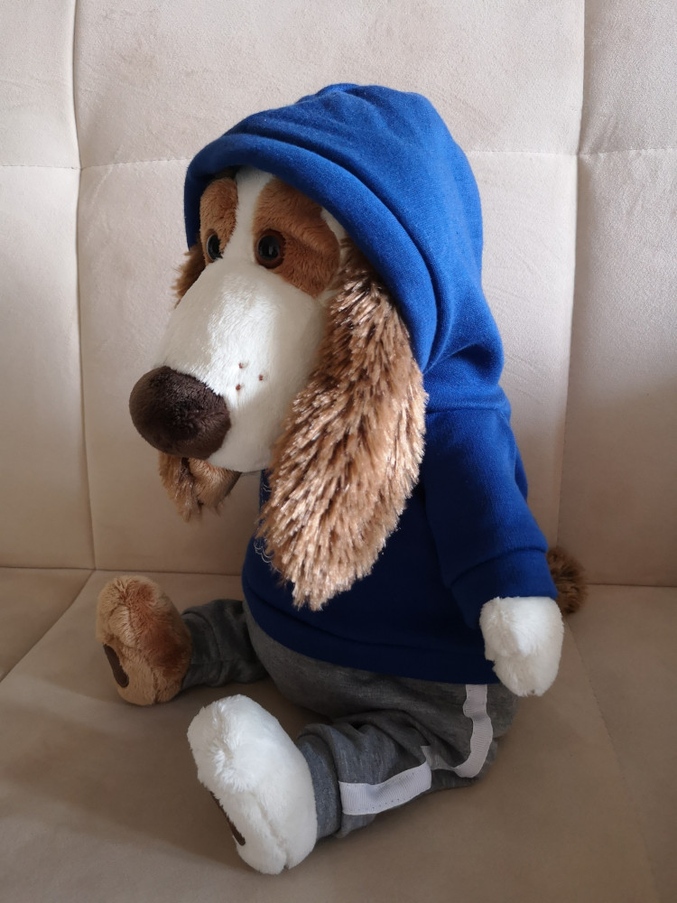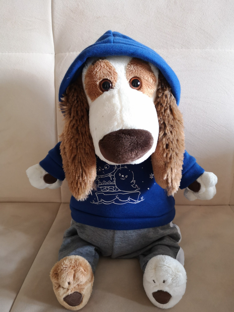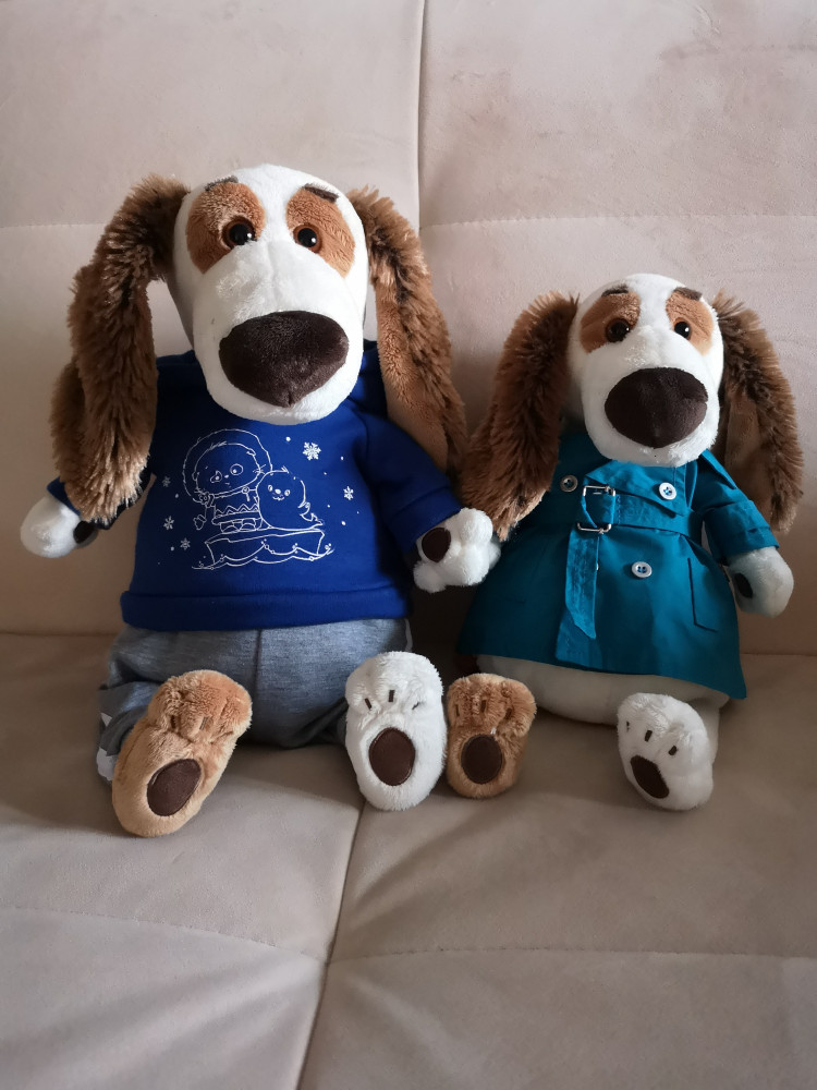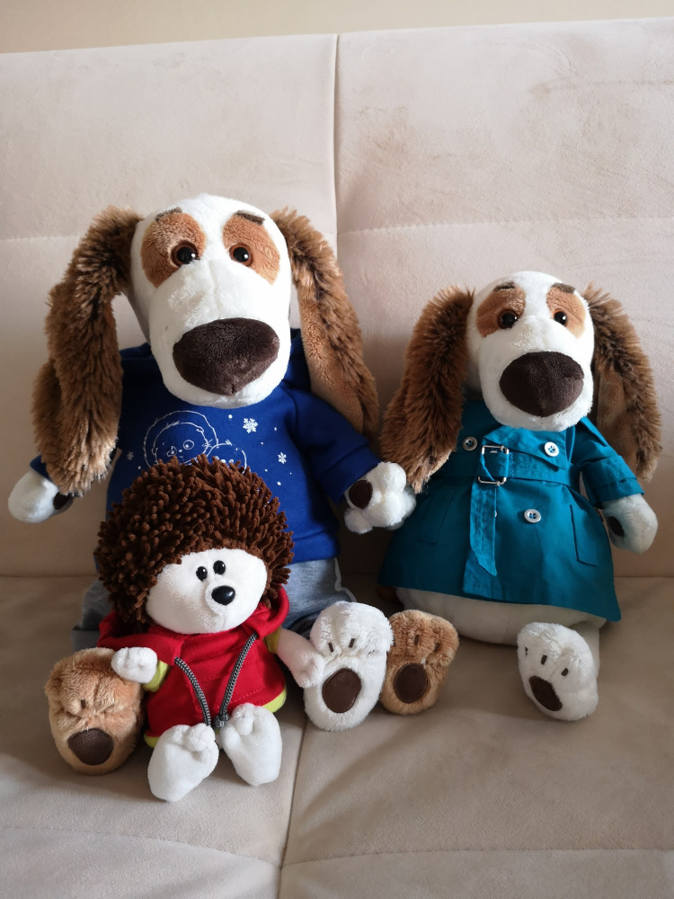 У нас много игрушек этого производителя, из разных серий и штук 10. Так вот этот пёсик приятно удивил и влюбил в себя всю семью с первого взгляда. Даже папино внимание привлёк:) Все игрушки этого производителя замечательные, так чем так выделился этот Бартоломео: он действительно большой, тактильно очень приятный за счёт мягкой ткани толстовки, сама игрушка набита плотно, но при этом очень мягкая и воздушная. Сшита безупречно, как и все остальные наши игрушки данного производителя. Нет ни единой ниточки, изъяна. Костюм в деталях полностью повторяет настоящую одежду. На фото разница в размерах с другими игрушками. Купили со скидкой, что вышло гораздо дешевле, чем Бартоломео поменьше. Один недостаток у этих зверушек: купив одну, остановиться невозможно.