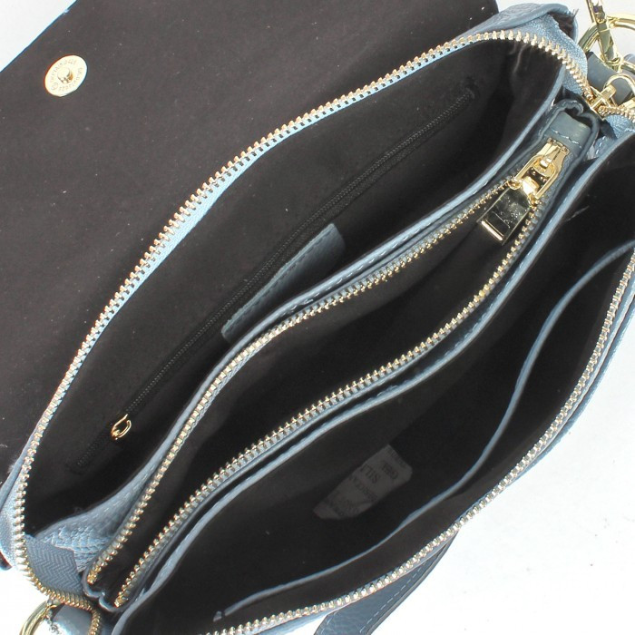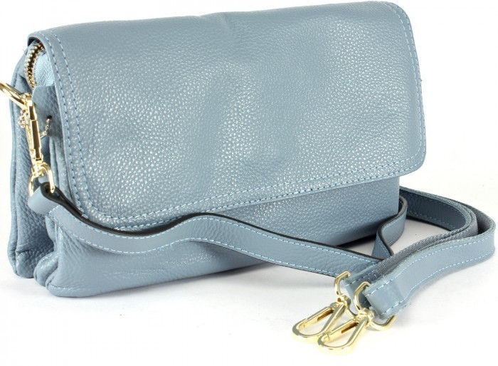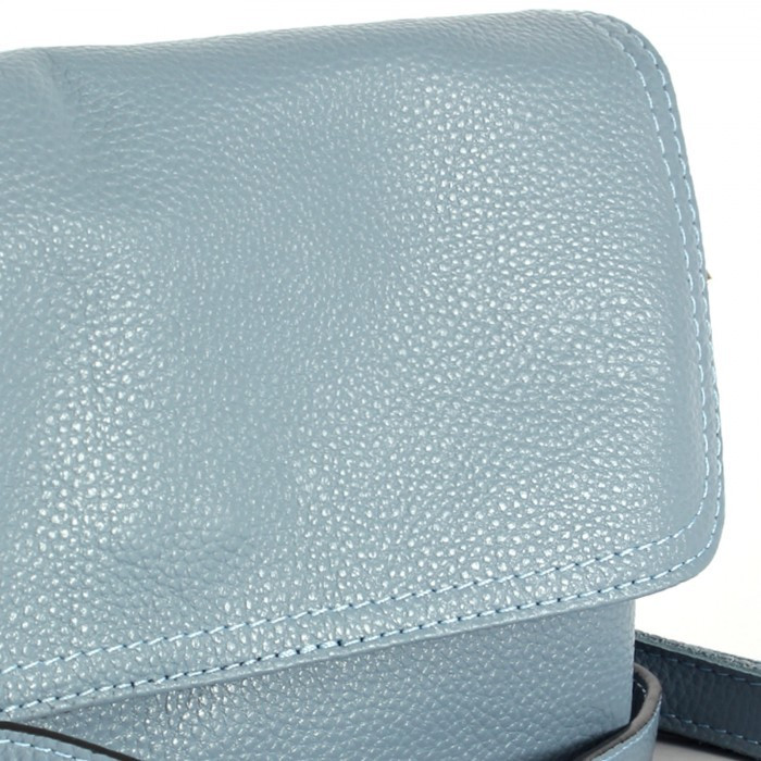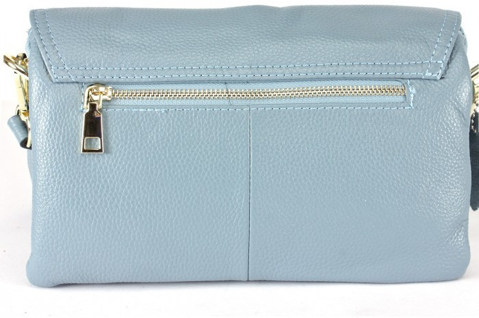 Покупала сумку голубого цвета, в целом, сумка неплохая, аккуратная, правда, задняя сторона сшита не из цельного куска кожи и ремень с тыльной стороны подбит тканью почему-то, а не полностью кожаный, это видно, когда ремень переворачивается на плече