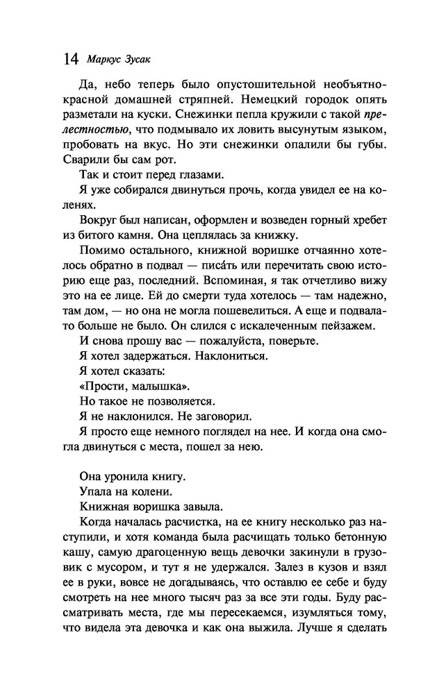 Все в этой книге идеально,шрифт ,белые страницы,размер книги,и сама история книги .Однозначно одна из любимых книг. Все мы читали что творилось в разных странах когда Гитлер начал войну,но вот что творилась в Германии вы узнаете в этой книге…и не все так радужно.