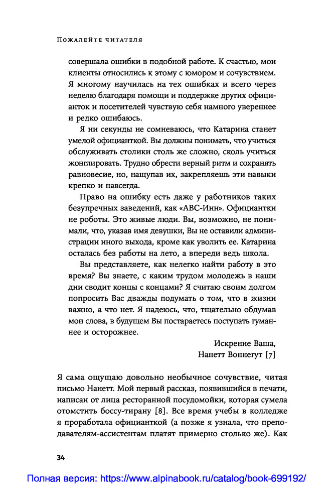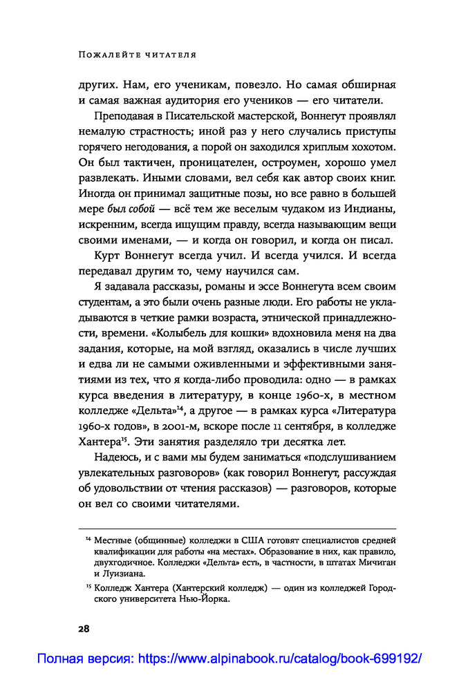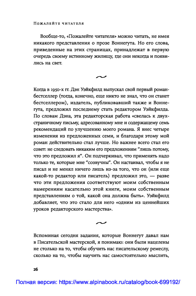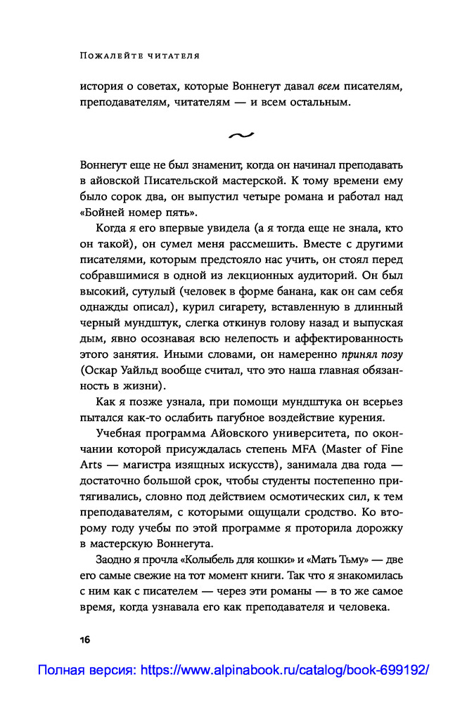 В данный момент этот товар отсутствует в продаже. Возможно, у нас найдется аналогичный или похожий товар здесь. Книга «Пожалейте читателя» — сборник советов Курта Воннегута начинающим писателям, его размышления о писательстве как ремесле и искусстве. А еще это биография мастера американской литературы, подготовленная после смерти Курта Воннегута писательницей Сьюзен Макконнелл, его бывшей студенткой, которая много лет с ним дружила.