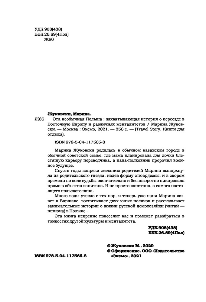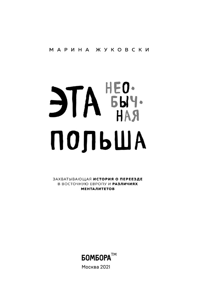 Эта необычная Польша. Захватывающая история о переезде в Восточную Европу и различиях менталитетовВ данный момент этот товар отсутствует в продаже. Возможно, у нас найдется аналогичный или похожий товар здесь. Серия: Travel Story. Книги для отдыха Марина Жуковски родилась в обычном казахском городе в обычной советской семье, где мама планировала для дочки блестящую карьеру переводчика, а папа-полковник пророчил военное будущее. |