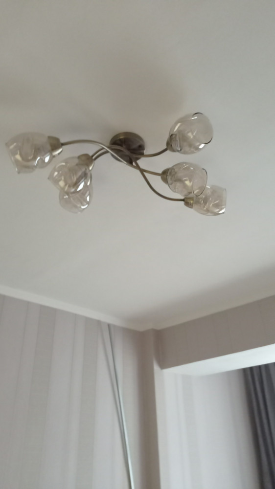Пришла в коробке, каждый плафон упакован дополнительно в отдельную коробку и двойную пупырку, края плафонов обработаны отлично, все гладкие, нет никаких сколов, плафоны из тонкого стекла очень изящные, все крепления на месте, даже положили тканевые перчатки, очень хорошо смотрится, но долго разбирались как правильно расположить детали с лампами, в инструкции нет поэтапного расположения, они переплетаются и там не ясно как это должно быть правильно.