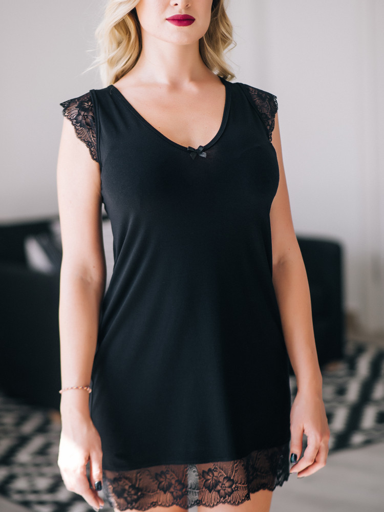Не разделяю восторженные отзывы о товаре. Сорочка ужасна. У меня есть халат этой фирмы, брала сорочку к нему и полагала, что качество товара будет то же. Ничего даже близко нет. По тону черного цвета сорочка не черная, а серо-черная, кружево дешёвое и у самой сорочки оооочень хлипкий трикотаж, на изделии подпалины от глажки, выглядит всё это отвратительно. Носить не буду, спать в этом неприятно. Получается, что качество товаров этой фирмы значительно упало, а цена повысилась. Очень расстроена.