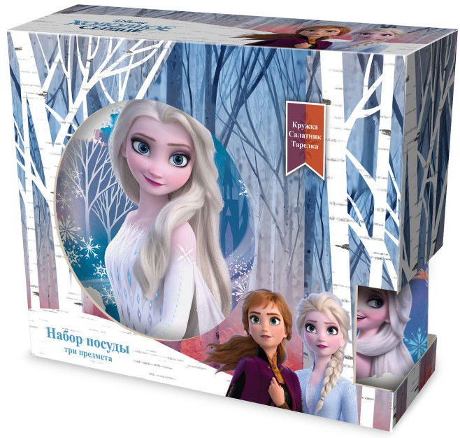 Детская фарфоровая посуда с героями полнометражного мультфильма «Холодное сердце 2» — отличный подарок ребенку! Комплект посуды «Холодное сердце 2» состоит из тарелки, кружки и миски. Любимые персонажи мультфильма изображены на каждом предмете посуды: девочки будут в восторге!