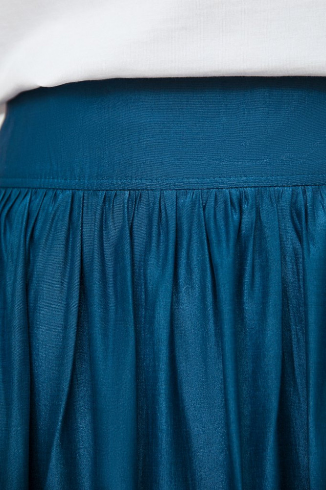 На свои параметры 48 размера, заказала 50 размер, по привычке, обычно многие производители маломерки сшьют, да и самой хотелось по свободней была юбка, короче перестраховалась, а зря. Я раньше часто покупала у данного производителя мужскую одежду, в которой полностью соответствуют размеры, и даже где то большемеры, ну или оверсайз. У меня если где то шире, то это бедра)), вот на них и держатся юбка, сильно спадает. При росте 1,60 юбка чуть ниже колен. Юбка имеет подьюбник, это плюс, иначе просвечивает, ткань с блестком, нарядная, с жакетами бирюзовых оттенков классно смотрится. Пришлось отказаться от юбки, куплю свой, 48 размер. Спасибо производителю и флип.