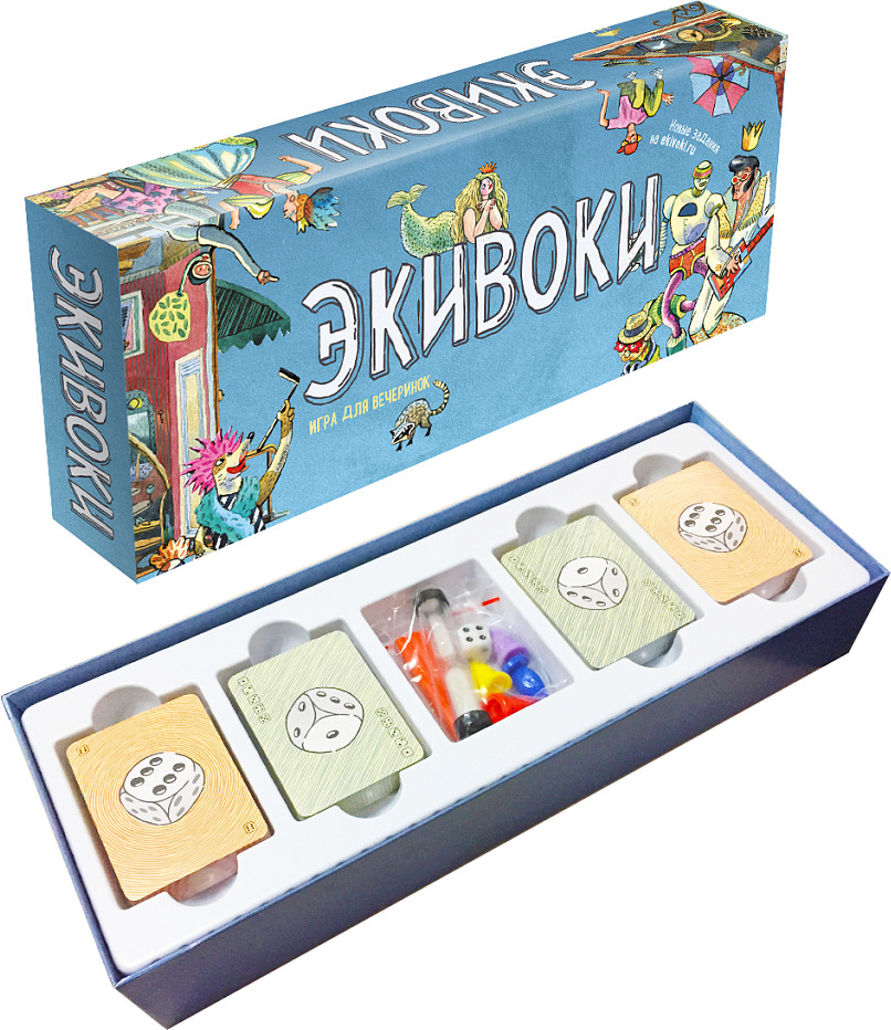 💳 Оплатить за товар можно при получении 🇰🇿 Есть бесплатная доставка по Казахстану от 1 дня 🎁 Копите бонусы с каждой покупки «Экивоки» — игра из карточек и кубика, которые заставят вас применить все умения, смекалку и фантазию. По определению — настольная, по сути своей — подвижная, «Экивоки» — уникальная игра. Карточки залакированы, благодаря чему приятны на ощупь и долговечны в использовании. Соревновательный дух и задания, которые нужно выполнить за короткий промежуток времени придают игре сумасшествия и задора. Игра увлекательна в любом возрасте, развивает всевозможные умения, зачастую неожиданные для самого выступающего. Особенность «Экивоки» и в том, что играть в нее можно в любом количестве человек, за себя или за команду — доверительная атмосфера познакомит и объединит каждого. |