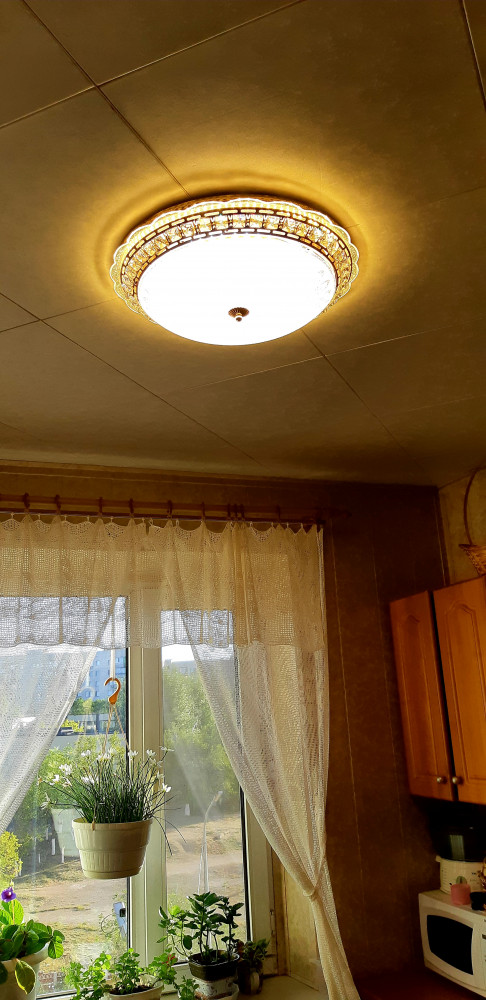 Хороший светильник. Есть несколько режимов освещения. Правда, мы пользуемся последним, так как очень уж светло. Можно включать светильник и с пульта, и с выключателя, что весьма удобно. Вещь дизайновая, хорошо смотрится и освещение отличное. Доставка быстрая, спасибо Flip, что при карантине мы можем, не выходя из дома, приобретать нужные товары.