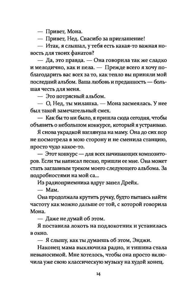 Мелодия звёздВ данный момент этот товар отсутствует в продаже. Возможно, у нас найдется аналогичный или похожий товар здесь. Серия: Young Adult. Бестселлеры романтической прозы Энджи — яркая, настойчивая и исключительно талантливая девушка, у которой есть заветная мечта: стать певицей. Бесконечное количество репетиций, занятия с хореографом, тонны исписанных тетрадей — и она почти у цели. Осталось лишь подать заявку на участи в конкурсе, который откроет ей двери в мир шоу-бизнеса. |