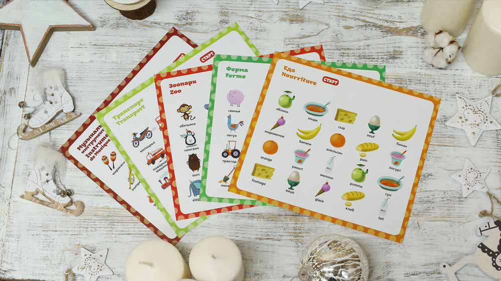 Мой первый французскийВ данный момент этот товар отсутствует в продаже. Возможно, у нас найдется аналогичный или похожий товар здесь. Серия: Интерактивные звуковые книги для изучения иностранных языков Интерактивная голосовая книга для изучения французского языка «Мой Первый Французский». Первые 100 слов малыш сможет выучить сам, находя одинаковые изображения автобуса, слона, барабана или мороженого. Одно из изображений озвучено на русском языке, другое — на французском. Нажимая на рисунок и повторяя услышанное, ребенок понимает, что один и тот же предмет звучит по-разному и запоминает, как его произносить. Слова озвучены профессиональными дикторами — носителями языка, поэтому ребенок сразу будет слышать, как правильно произносить то или иное слово. Заниматься с ребенком можем и няня, и бабушка — любой человек, который даже не знает языка! В книге предусмотрено все, чтобы изучение языка было легким, а ребенок запоминал слова, играя! Слова разбиты на темы: 10 тем по 10 слов в каждой: еда, эмоции, животные, музыкальные инструменты и другие темы и слова, которые будут интересны и нужны в первое знакомство с испанским языком. Слова нарисованы на карточках, которые «заговорят» как только ребенок нажмет кнопку «Старт»! |