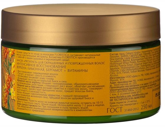 Floristica Маска для волос «Интенсивное восстановление»В данный момент этот товар отсутствует в продаже. Возможно, у нас найдется аналогичный или похожий товар здесь. Серия: Provence Маска Provence для окрашенных и поврежденных волос интенсивное восстановление Вербена тонизирует и освежает кожу головы, стимулирует рост волос и облегчает их расчесывание. Бергамот улучшает качество и структуру волос, придает им блеск, эластичность и шелковистость. Маска обладает накопительным эффектом — с каждой процедурой волосы становятся сильнее и гуще и выглядят все более здоровыми и ухоженными. |