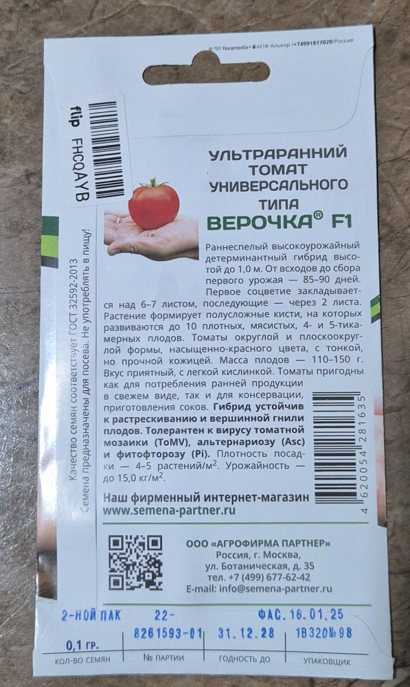 Получила хорошие отзывы на этот томат. Хочу попробовать в своей теплице. Срок годности: декабрь 2028г.