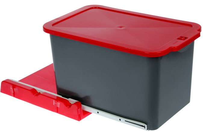 Выдвижное мусорное ведро отличается продуманной конструкцией, надежностью и решает сразу все проблемы хранения отходов на кухне. Легко снимается для ухода. Крышка автоматически поднимается при открытии шкафчика для хранения ведра и опускается при закрытии. Система роликовых направляющих обеспечивает плавность хода при выдвижении.