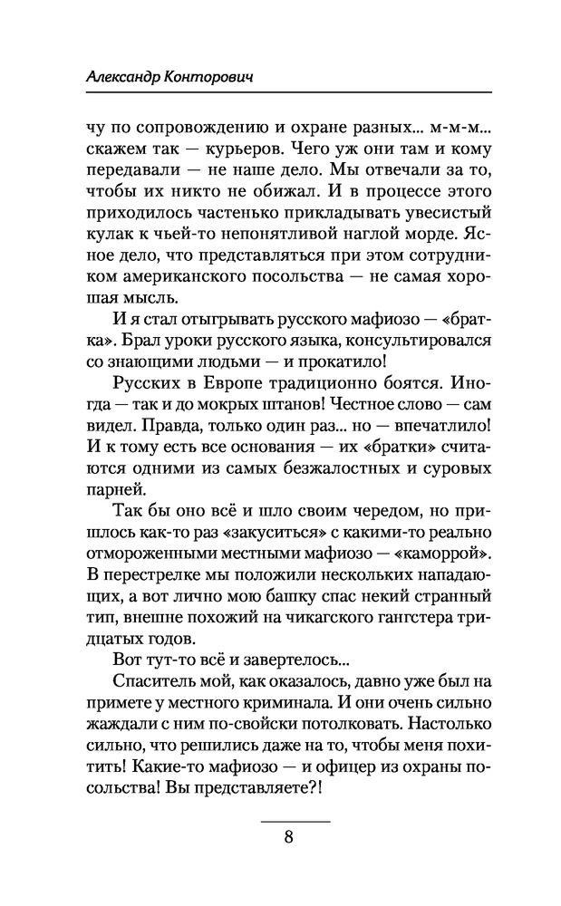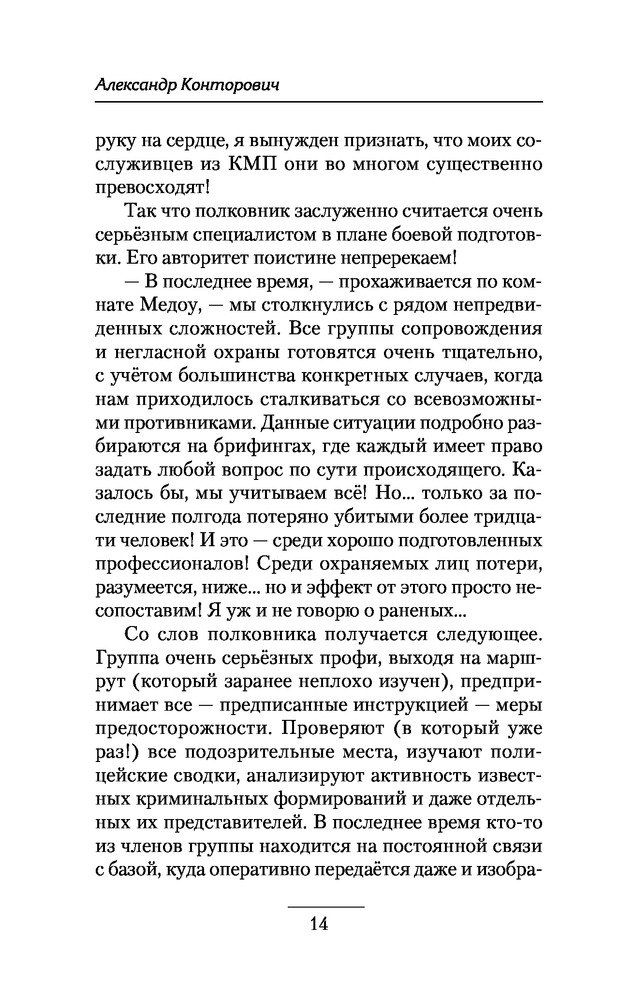 | Александр Сергеевич Конторович – российский писатель. Родился в Москве. Образование – высшее юридическое, также получил еще две специальности: техника-топографа и чертежника-конструктора. Занимался альпинизмом и авторской песней. Военную службу начал в 1975 году, в 9 истребительной авиационной дивизии. Комендатура, особый отдел. Демобилизовавшись из армии, короткое время работал старшим техником в Проблемной лаборатории лавин и селей МГУ. Затем снова вернулся на военную службу, выйдя... |