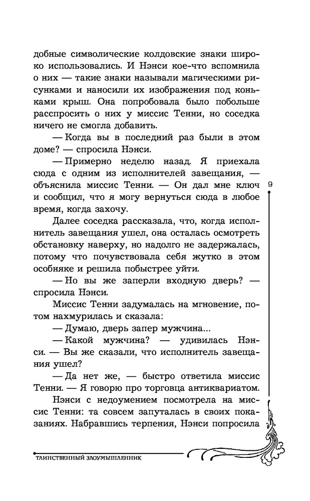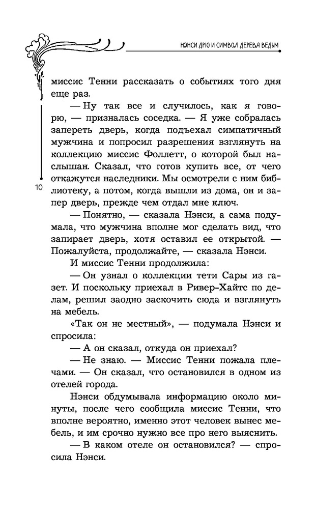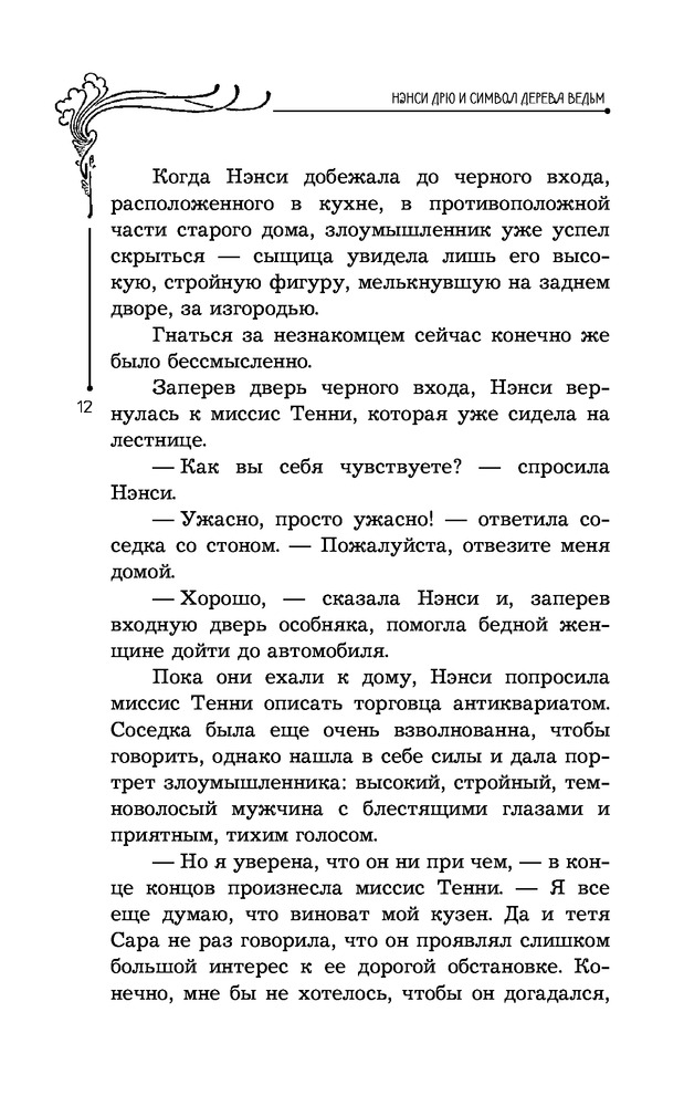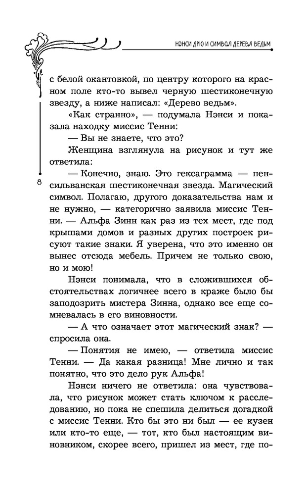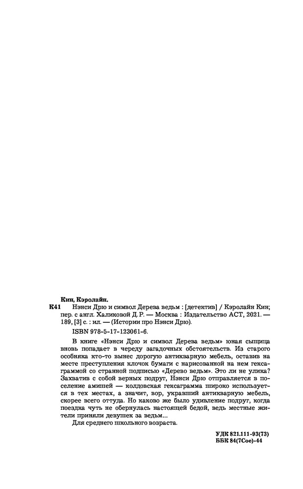 Нэнси Дрю и символ Дерева ведьмВ данный момент этот товар отсутствует в продаже. Возможно, у нас найдется аналогичный или похожий товар здесь. Серия: Истории про Нэнси Дрю В книге «Нэнси Дрю и символ Дерева ведьм» юная сыщица вновь попадает в череду загадочных обстоятельств. Из старого особняка кто-то вынес дорогую антикварную мебель, оставив на месте преступления клочок бумаги с нарисованной на нем гексаграммой со странной подписью «Дерево ведьм». Это ли не улика? Захватив с собой верных подруг, Нэнси Дрю отправляется в поселение амишей — колдовская гексаграмма широко используется в тех местах, а значит, вор, укравший антикварную мебель, скорее всего оттуда. Но каково же было удивление девушек, когда поездка чуть не обернулась настоящей бедой, ведь местные жители приняли девушек за ведьм... |