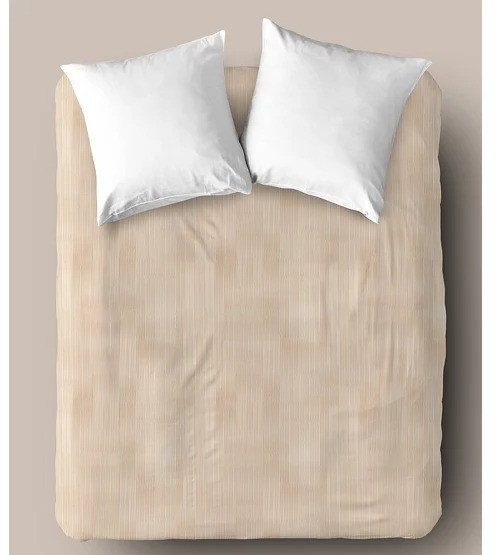 Простыня сшита из сатина — самого популярного плетения 100%-го хлопка. Сатин очень мягкий, износостойкий, который производят из крученой хлопковой нити по специальной технологии двойного плетения. Чем больше скручена нить, тем сильнее блестит ткань. Плотное переплетение нитей делает сатин премиум прочным и долговечным. Для производства сатина используют только хлопок высшего качества. Белье из такой ткани выдерживает 200–300 стирок. Сатин дешевле, чем шёлк, но дороже, чем другие ткани из хлопка. Из него изготовляется красивое качественное бельё для повседневного применения.
