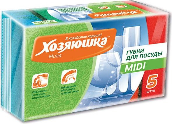 Хозяюшка Мила Набор губок для мытья посуды «Midi»+17 размер цена удобство
