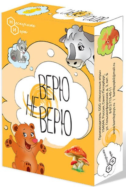 💳 Оплатить за товар можно при получении 🇰🇿 Есть бесплатная доставка по Казахстану от 1 дня 🎁 Копите бонусы с каждой покупки В игру «Верю не верю» рекомендуем играть компанией от 3-х человек. Но можно играть и вдвоем. Колода состоит из 10-ти видов животных, по 4 карты каждого вида + 10 специальных карт. |