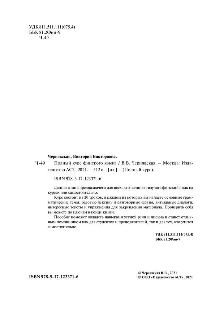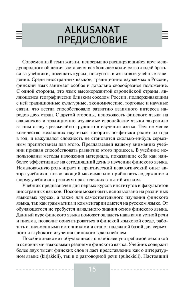 💳 Оплатить за товар можно при получении 🇰🇿 Есть бесплатная доставка по Казахстану от 1 дня 🎁 Копите бонусы с каждой покупки Серия: Полный курс Данная книга предназначена для всех, кто начинает изучать финский язык на курсах или самостоятельно. |