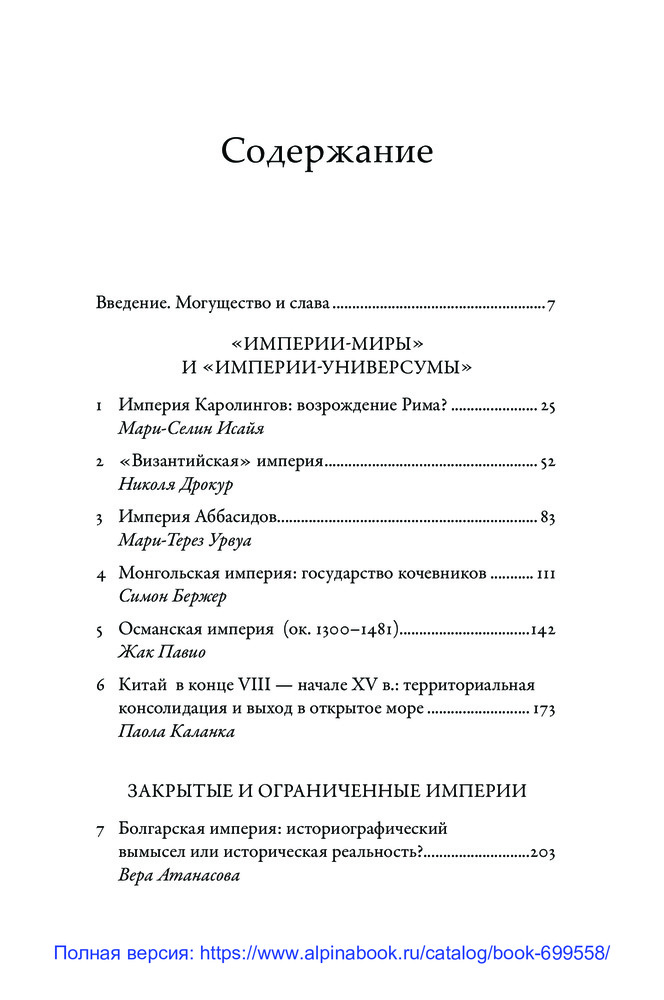 Цель настоящего сборника — охватить единым взглядом схожие между собой политические образования в рамках протяженного хронологического отрезка в планетарном масштабе. Структура изложения материала обусловлена предложенным Гугенхеймом делением империй на три группы: империи-универсумы (такие как империя Каролингов, Византия, Монгольская и Китайская империи и т.д.), империи, изолированные в определенном географическом пространстве (Болгарская, Сербская, Японская, Латинская империя Константинополя, солнечные империи Латинской Америки), а также империи с рассредоточенными территориями (Германская империя Оттонов, Нормандская империя, империя Плантагенетов, талассократические империи Венеции и Шривиджаи).