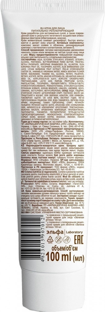 Зеленая аптека Крем для лица «Питательно-регенерирующий»