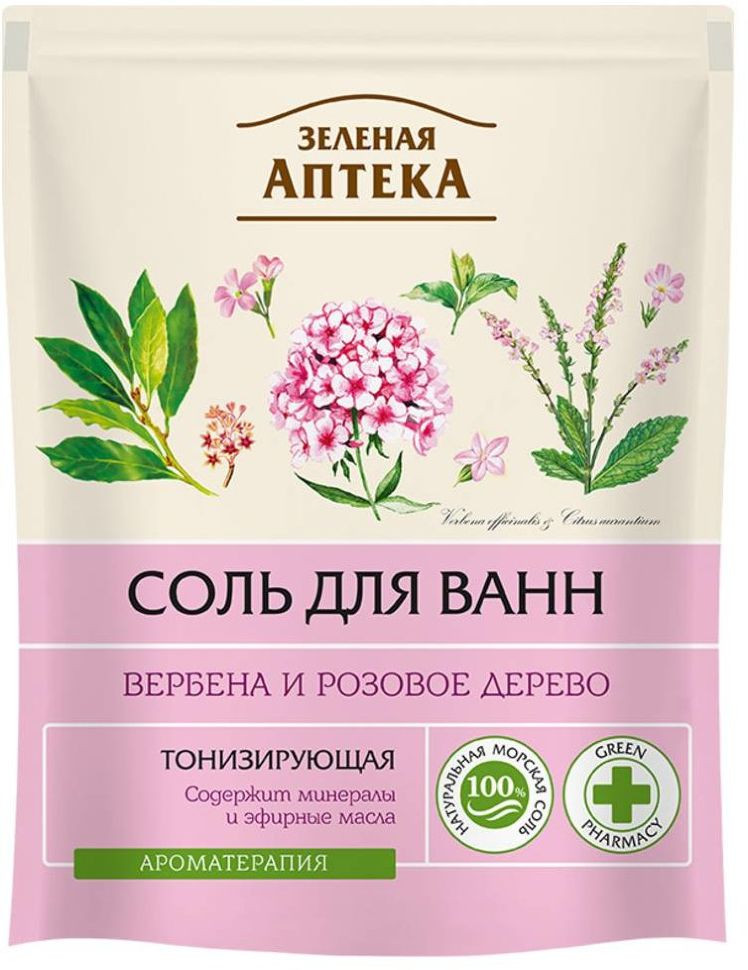 Зеленая аптека Соль для ванн «Вербена и розовое дерево»