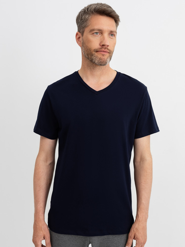 Футболка из кулирного полотна свободного силуэта. Горловина имеет V-образный вырез. Длина классическая, рукава короткие. Отличная базовая футболка!