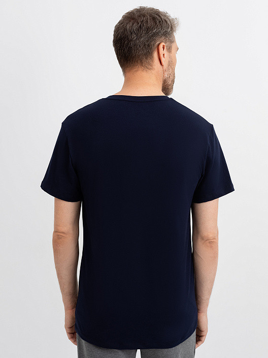 хорошая футболка, тёмно- синяя как на картинке, трикотаж качественный, не жарко будет в ней. Мужу понравилось, у него 48 размер но хотел чтобы посвободнее было, поэтому заказала 54, нормально села.
