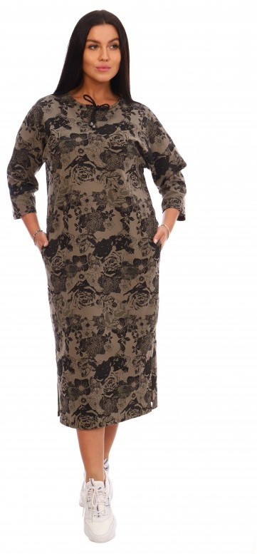 Платье всем хорошее, присоединяюсь к предыдущим комментариям, на свой 54-56 р. заказала 60, серое. Сидит, как на модели - свободное, невесомое. Одно "но" - цвет не серый, а хаки, так и на этикетке написано. Впервые у меня на Flip такое несоответствие, что меня немного огорчило. Оставила, так как очень комфортное, хотя цвет не мой.