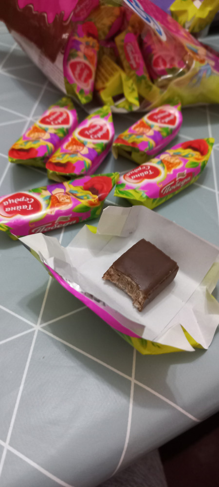 Конфеты свежие. Вкус сгущёнки слабо выраженный. Но они все равно замечательные. Вафелька внутри мягкая.
