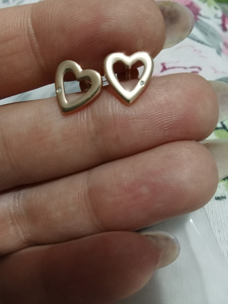 Очень милые сердечки. Бриллиантик, правда, почти не виден, но выглядят хорошо, особенно, в сочетании с такой же подвесочкой.