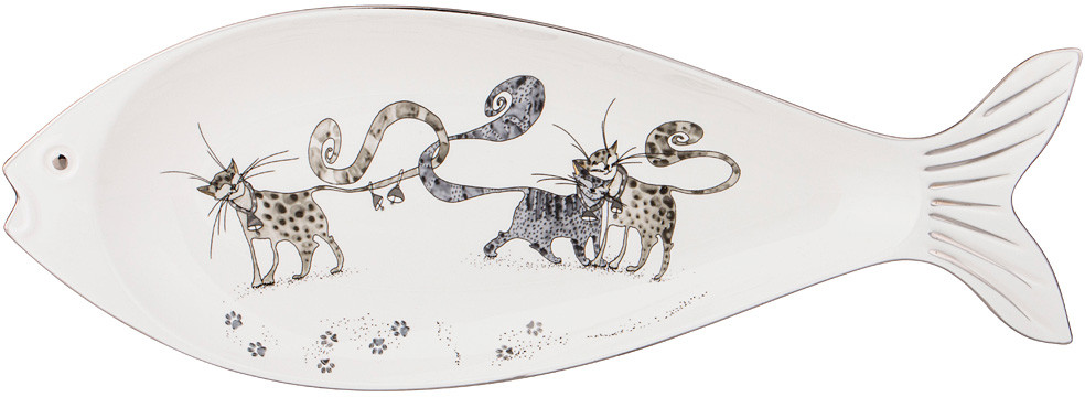 Коллекция этой посуды с котиками у меня постепенно пополняется. Блюдо большое, вместительное. Брала для выкладки сельди с луком. Рыбий хвостик на блюде - оригинальное решение 😊 Если посуда с котиками вам нравится, берите и это блюдо для комплекта