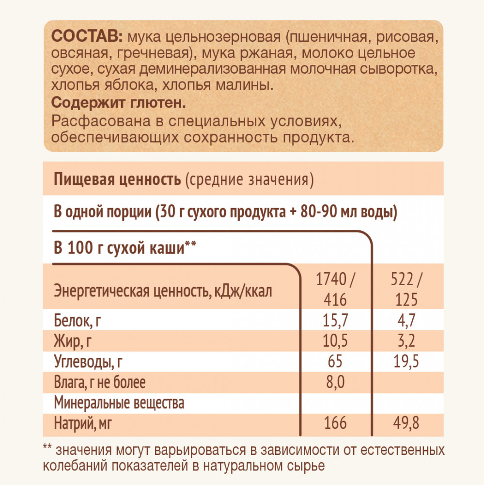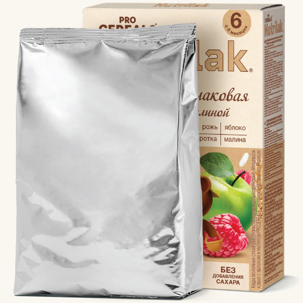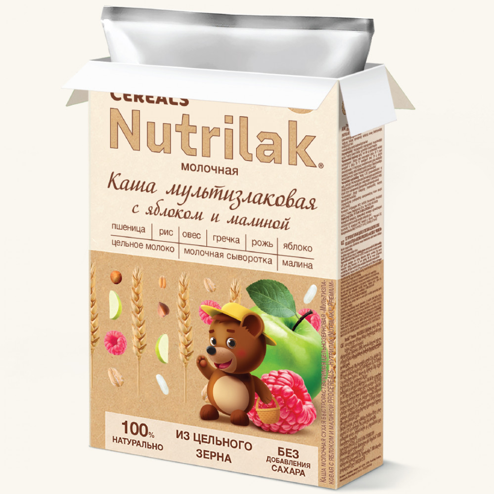Nutrilak Каша молочная цельнозерновая мультизлаковая «Яблоко с малиной»+50 вкус детям нравится качество