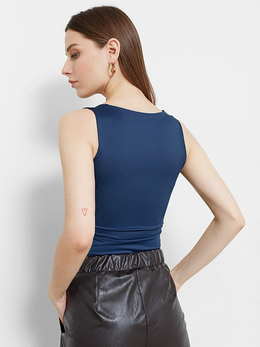 Отличный базовый топ. Идеален по длине, двойная ткань по бюсту, что даёт возможность носить без нижнего белья если с джинсами. А если под пиджак, все очень хорошо по вырезу, не видно белье. Именно то, что искала, жаль нет многих цветов.