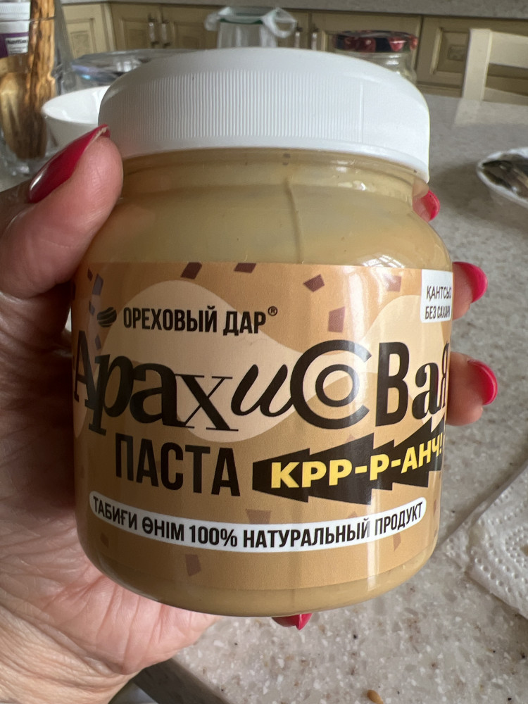Шикарная паста, очень вкусная. На мой вкус сладкая, но приятная сладость. Надеюсь, все как указано на упаковке и не содержит сахара. Внутри кусочки арахиса хрустящие.