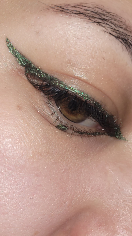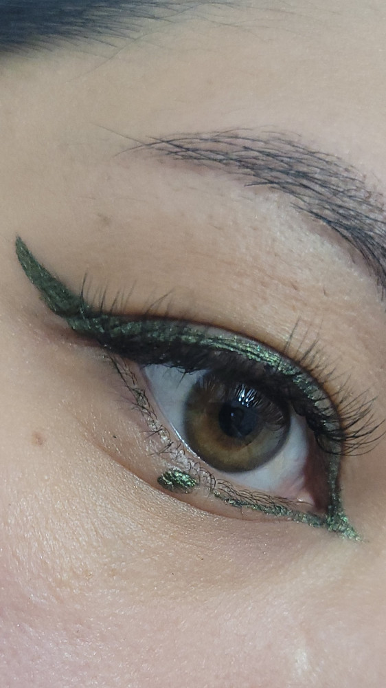 Цвет именно то что искала. Держится весь день, не сыпится не стирается. Никогда не пользовалась подводкой, сравнивать не с чем, но данная наносится без труда