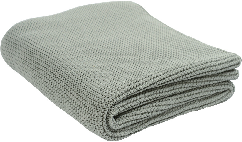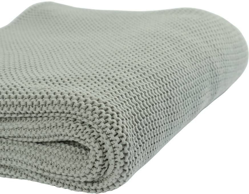 Однотонный плед мятного цвета выполнен из хлопка жемчужной вязки. Дышащий фактурный материал не только легкий, но и теплый. Изделие не вызывает раздражения даже на самой нежной на коже.