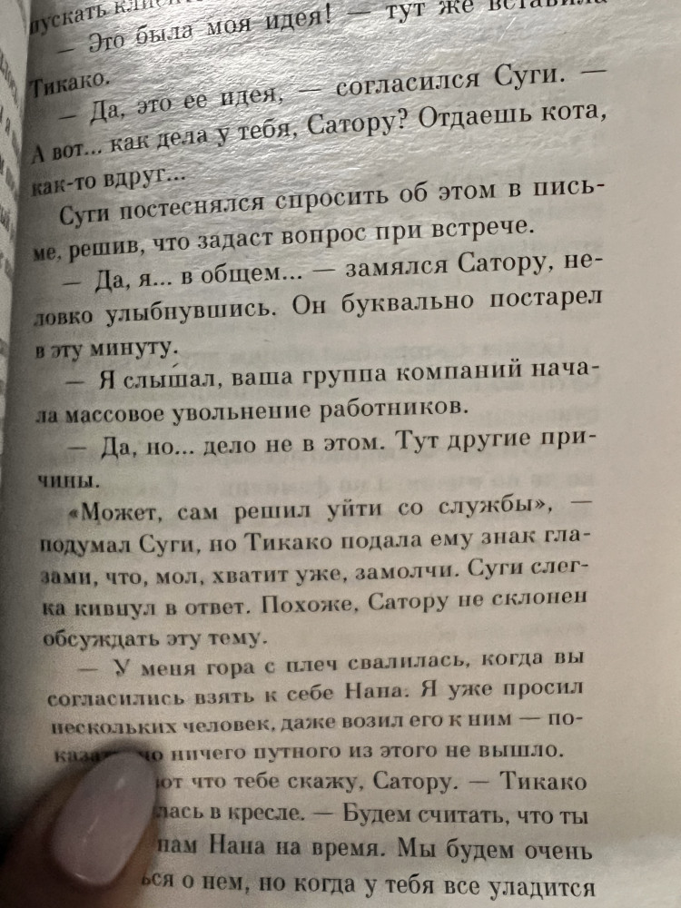 Самая лучшая добрая книга, которую я читала в последние дни. Очень советую всем кто сбился с пути. Это не карта или готовая схема, это философия бытия жизни сквозь призму и взгляд кота. Это как фильм Хаяо Миядзаки, где тепло , уютно и всегда хорошо. Хиро Арикава идеально все описал. Читается очень легко