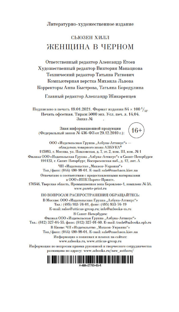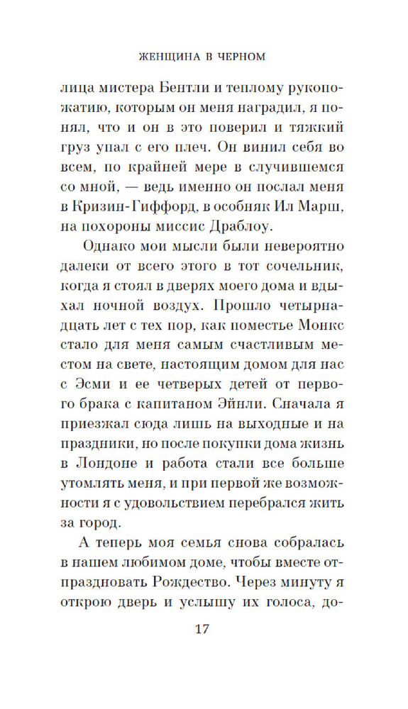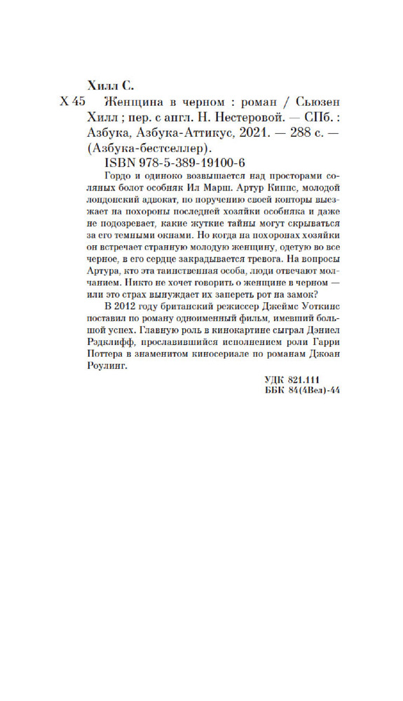 Женщина в черномВ данный момент этот товар отсутствует в продаже. Возможно, у нас найдется аналогичный или похожий товар здесь. Серия: Азбука-бестселлер Гордо и одиноко возвышается над просторами соляных болот особняк Ил Марш. Артур Киппс, молодой лондонский адвокат, по поручению своей конторы выезжает на похороны последней хозяйки особняка и даже не подозревает, какие жуткие тайны могут скрываться за его темными окнами. Но когда на похоронах хозяйки он встречает странную молодую женщину, одетую во все черное, в его сердце закрадывается тревога. На вопросы Артура, кто эта таинственная особа, люди отвечают молчанием. Никто не хочет говорить о женщине в черном — или это страх вынуждает их запереть рты на замок? |