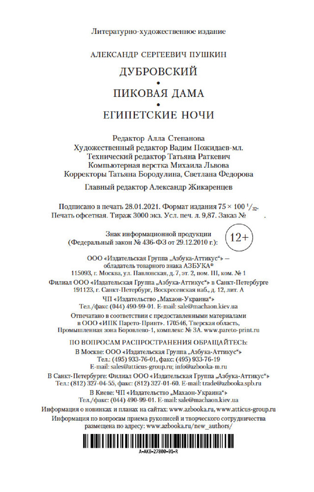 Дубровский. Пиковая дама. Египетские ночи-20% +51