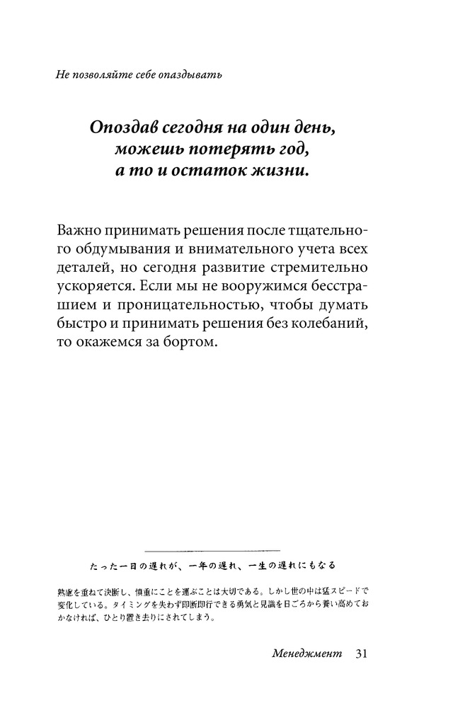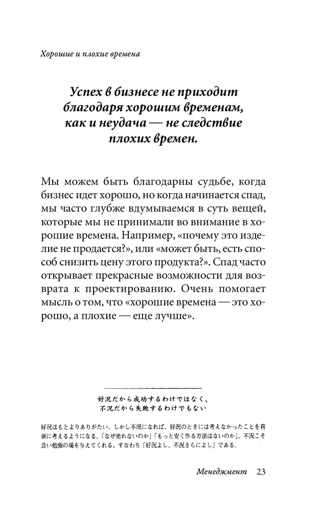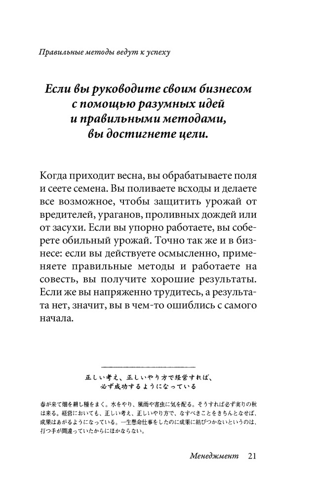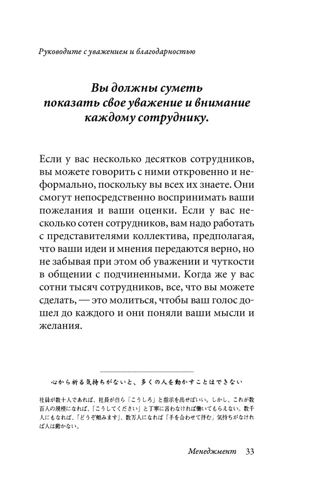Книга написана кратко и четко! Это что-то вроде подсказок для правильного менеджмента, работы и жизни, и ты можешь перечитывать ее постоянно, когда возникает потребность в подсказке правильного пути. Я ее прочла за час, можно и быстрее) Автор является олицетворением мудрости и праведности.