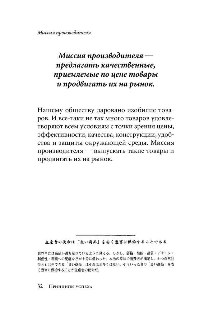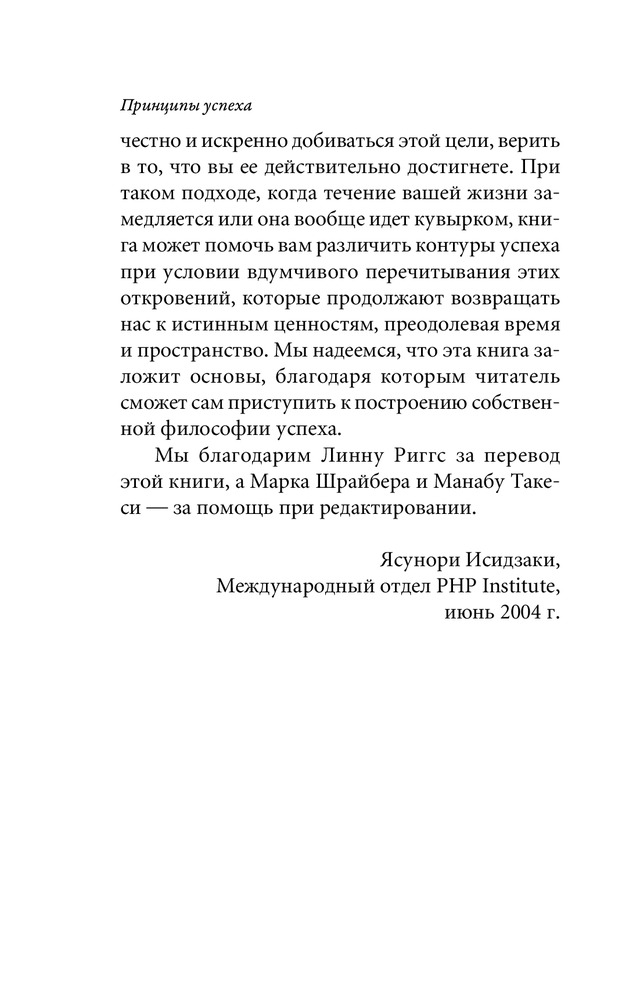 Принципы успехаВ данный момент этот товар отсутствует в продаже. Возможно, у нас найдется аналогичный или похожий товар здесь. О принципах, которые позволяют достичь успеха в менеджменте, в любой работе, в жизни в целом. В книге представлены 105 принципов успеха, сформулированных Коносуке Мацуситой. |