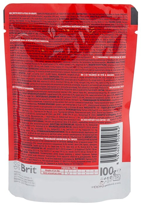 Brit Корм для кошек с говядиной и горошком